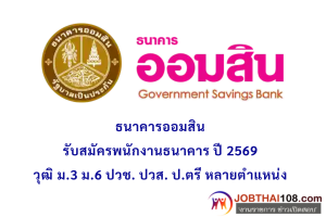 ธนาคารออมสิน รับสมัครพนักงานธนาคาร ปี 2569 วุฒิ ม.3 ม.6 ปวช. ปวส. ป.ตรี หลายตำแหน่ง