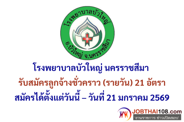 โรงพยาบาลบัวใหญ่ นครราชสีมา รับสมัครลูกจ้างชั่วคราว (รายวัน) 21 อัตรา