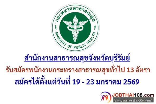 สำนักงานสาธารณสุขจังหวัดบุรีรัมย์ รับสมัครพนักงานกระทรวงสาธารณสุขทั่วไป 13 อัตรา