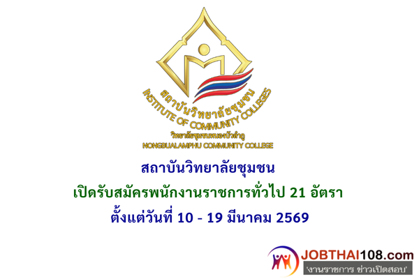 สถาบันวิทยาลัยชุมชน เปิดรับสมัครพนักงานราชการทั่วไป 21 อัตรา ตั้งแต่วันที่ 10 – 19 มีนาคม 2569