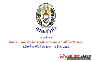 กรมเจ้าท่า รับสมัครบุคคลเพื่อเลือกสรรเป็นพนักงานราชการทั่วไป 27 อัตรา สมัครตั้งแต่วันที่ 25 ก.พ. – 9 มี.ค. 2569