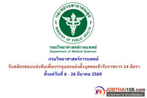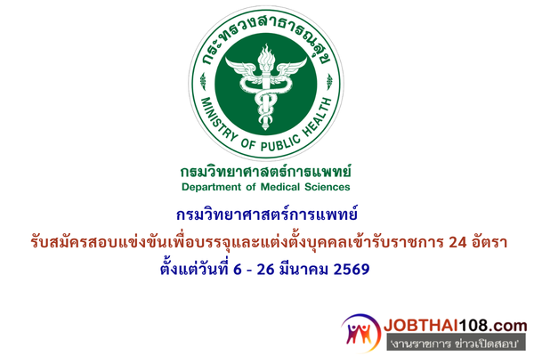กรมวิทยาศาสตร์การแพทย์ รับสมัครสอบแข่งขันเพื่อบรรจุและแต่งตั้งบุคคลเข้ารับราชการ 24 อัตรา ตั้งแต่วันที่ 6 – 26 มีนาคม 2569