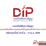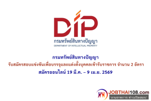กรมทรัพย์สินทางปัญญา รับสมัครสอบแข่งขันเพื่อบรรจุและแต่งตั้งบุคคลเข้ารับราชการ สมัครออนไลน์ 19 มี.ค. – 9 เม.ย. 2569