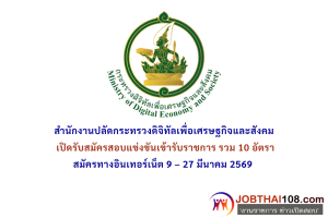 สำนักงานปลัดกระทรวงดิจิทัลเพื่อเศรษฐกิจและสังคม เปิดรับสมัครสอบแข่งขันเข้ารับราชการ ปี 2569 รวม 10 อัตรา
