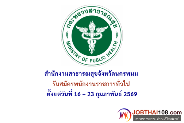 สำนักงานสาธารณสุขจังหวัดนครพนม รับสมัครพนักงานราชการทั่วไป ตั้งแต่วันที่ 16 – 23 กุมภาพันธ์ 2569