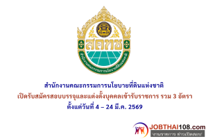 สำนักงานคณะกรรมการนโยบายที่ดินแห่งชาติ เปิดรับสมัครสอบราชการ 2569 ตั้งแต่วันที่ 4 – 24 มี.ค. 2569