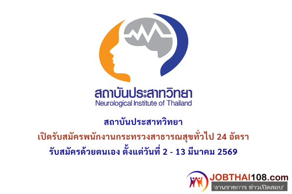 สถาบันประสาทวิทยา เปิดรับสมัครนักงานกระทรวงสาธารณสุขทั่วไป 24 อัตรา รับสมัครด้วยตนเอง ตั้งแต่วันที่ 2 – 13 มีนาคม 2569