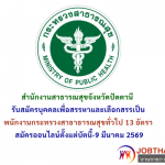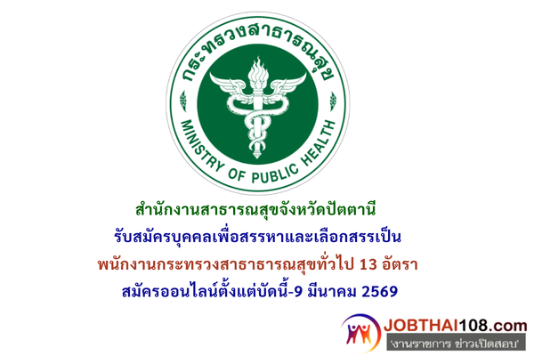 สสจ.ปัตตานี รับสมัครบุคคลเพื่อสรรหาและเลือกสรรเป็นพนักงานกระทรวงสาธาธารณสุขทั่วไป 13 อัตรา สมัครออนไลน์ตั้งแต่บัดนี้-9 มีนาคม 2569