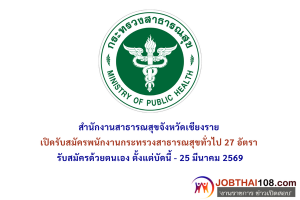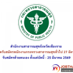 สำนักงานสาธารณสุขจังหวัดเชียงราย เปิดรับสมัครพนักงานกระทรวงสาธารณสุขทั่วไป 27 อัตรา ตั้งแต่บัดนี้ – 25 มีนาคม 2569