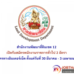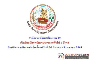 สำนักงานพัฒนาที่ดินเขต 12 เปิดรับสมัครพนักงานราชการทั่วไป 2 อัตรา ตั้งแต่วันที่ 30 มีนาคม – 3 เมษายน 2569