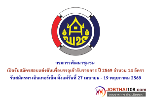 กรมการพัฒนาชุมชน เปิดรับสมัครสอบแข่งขันเพื่อบรรจุเข้ารับราชการ ปี 2569 จำนวน 14 อัตรา ตั้งแต่วันที่ 27 เมษายน – 19 พฤษภาคม 2569