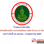 โรงพยาบาลตากสิน เปิดรับสมัครพนักงานประกันสังคม 2569 จำนวน 27 อัตรา ระหว่างวันที่ 16 เมษายน – 8 พฤษภาคม 2569