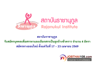 สถาบันราชานุกูล รับสมัครบุคคลเพื่อสรรหาและเลือกสรรเป็นลูกจ้างชั่วคราว จำนวน 4 อัตรา ตั้งแต่วันที่ 17 – 23 เมษายน 2569
