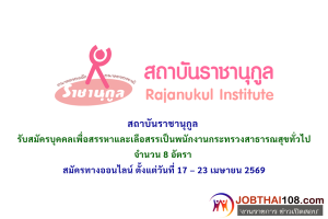 สถาบันราชานุกูล รับสมัครบุคคลเพื่อสรรหาและเลือสรรเป็นพนักงานกระทรวงสาธารณสุขทั่วไป จำนวน 8 อัตรา ตั้งแต่วันที่ 17 – 23 เมษายน 2569