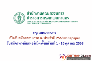 สำนักงาน ก.ก. รับสมัครคัดเลือกเพื่อบรรจุและแต่งตั้งบุคคลเข้ารับราชการเป็นข้าราชการกรุงเทพมหานครสามัญ