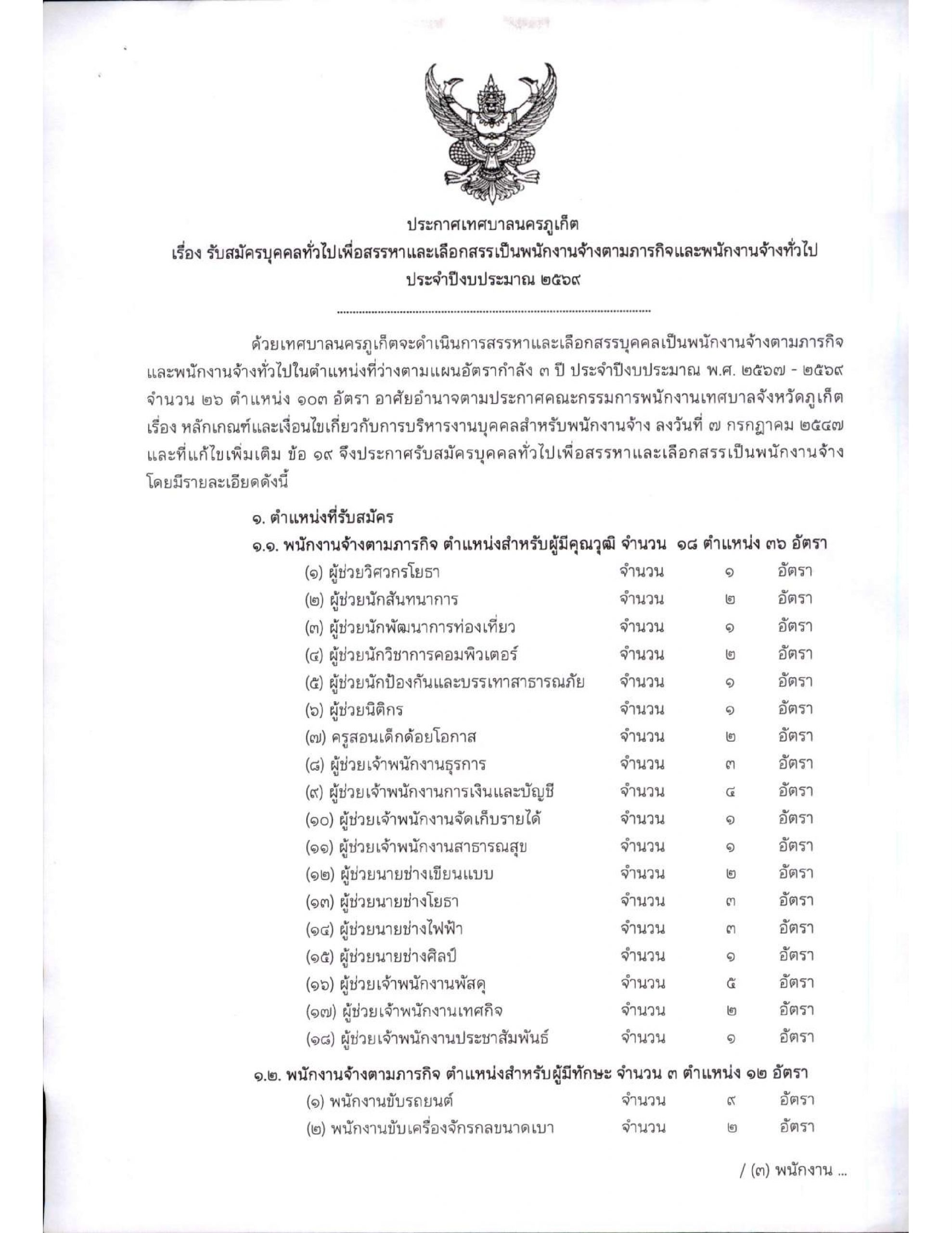 ด้วยเทศบาลนครภูเก็ตจะดำเนินการสรรหาและเลือกสรรบุคคลเป็นพนักงานจ้างตามภารกิจ