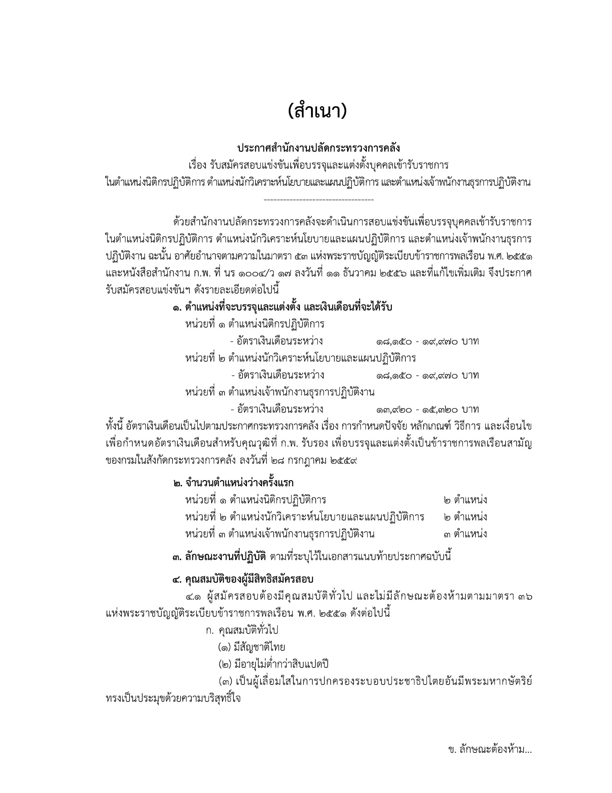 ประกาศสำนักงานปลัดกระทรวงการคลัง เรื่อง รับสมัครสอบแข่งขันเพื่อบรรจุและแต่งตั้งบุคคลเข้ารับราชการ