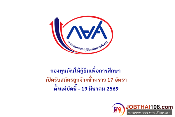 กองทุนเงินให้กู้ยืมเพื่อการศึกษา เปิดรับสมัครลูกจ้างชั่วคราว 17 อัตรา ตั้งแต่บัดนี้ – 19 มีนาคม 2569