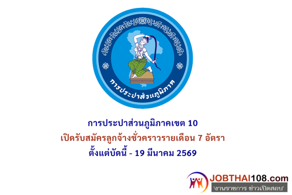 การประปาส่วนภูมิภาคเขต 10 เปิดรับสมัครลูกจ้างชั่วคราวรายเดือน 7 อัตรา ตั้งแต่บัดนี้ – 19 มีนาคม 2569