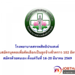 โรงพยาบาลสรรพสิทธิประสงค์ รับสมัครบุคคลเพื่อคัดเลือกเป็นลูกจ้างชั่วคราว 102 อัตรา