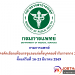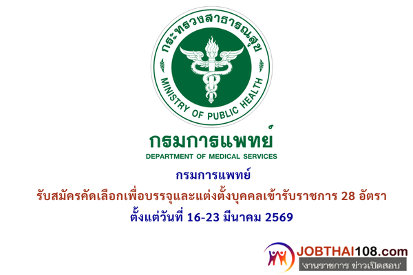 กรมการแพทย์ รับสมัครคัดเลือกเพื่อบรรจุและแต่งตั้งบุคคลเข้ารับราชการ 28 อัตรา ตั้งแต่วันที่ 16-23 มีนาคม 2569
