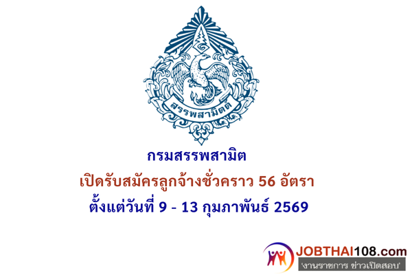 กรมสรรพสามิต เปิดรับสมัครลูกจ้างชั่วคราว 56 อัตรา ตั้งแต่วันที่ 9 - 13 กุมภาพันธ์ 2569