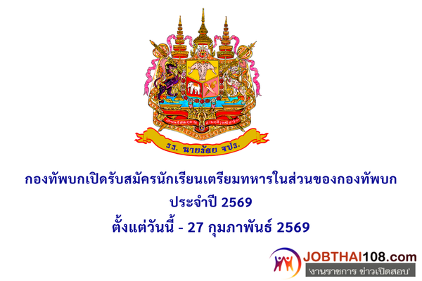 กองทัพบกเปิดรับสมัครนักเรียนเตรียมทหารในส่วนของกองทัพบก ประจำปี 2569 ตั้งแต่วันนี้ – 27 กุมภาพันธ์ 2569