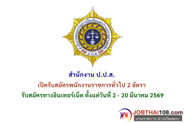 สำนักงาน ป.ป.ส. เปิดรับสมัครพนักงานราชการทั่วไป 2 อัตรา รับสมัครทางอินเทอร์เน็ต ตั้งแต่วันที่ 2 – 20 มีนาคม 2569