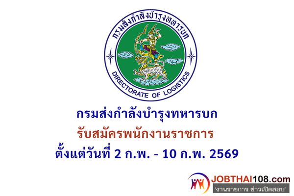 กรมส่งกําลังบํารุงทหารบก รับสมัครพนักงานราชการ ตั้งแต่วันที่ 2 ก.พ. – 10 ก.พ. 2569