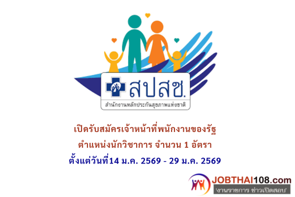 สำนักงานหลักประกันสุขภาพแห่งชาติ เปิดรับสมัครเจ้าหน้าที่พนักงานของรัฐ ตั้งแต่วันที่14 ม.ค. 2569 - 29 ม.ค. 2569 ตำแหน่งที่รับสมัคร - ตำแหน่งนักวิชาการ จำนวน 1 อัตรา -ไฟล์ประกาศรับสมัคร