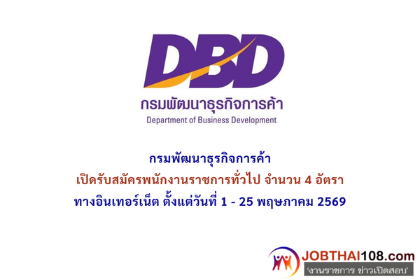 กรมพัฒนาธุรกิจการค้า เปิดรับสมัครพนักงานราชการทั่วไป จำนวน 4 อัตรา   ตั้งแต่วันที่ 1 – 25 พฤษภาคม 2569