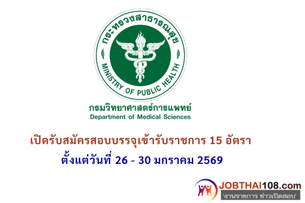 กรมวิทยาศาสตร์การแพทย์ เปิดรับสมัครพนักงานราชการทั่วไป 6 อัตรา รับสมัครทางอินเทอร์เน็ต ตั้งแต่วันที่ 14 - 20 สิงหาคม 2568