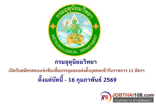 กรมอุตุนิยมวิทยา รับสมัครสอบแข่งขันเพื่อบรรจุและแต่งตั้งบุคคลเข้ารับราชการ ตั้งแต่วันที่ 16 ก.พ. – 9 มี.ค. 2569