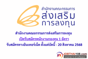 สำนักงานคณะกรรมการส่งเสริมการลงทุน เปิดรับสมัครลูกจ้างชั่วคราว 1 อัตรา รับสมัครทางอินเทอร์เน็ต ตั้งแต่วันที่ 9 – 16 ตุลาคม 2568