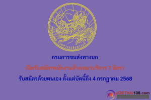 กรมการขนส่งทางบก เปิดรับสมัครพนักงานทุนหมุนเวียน 14 อัตรา รับสมัครทางอินเทอร์เน็ต ตั้งแต่วันที่ 24 ธันวาคม 2568 – 14 มกราคม 2569