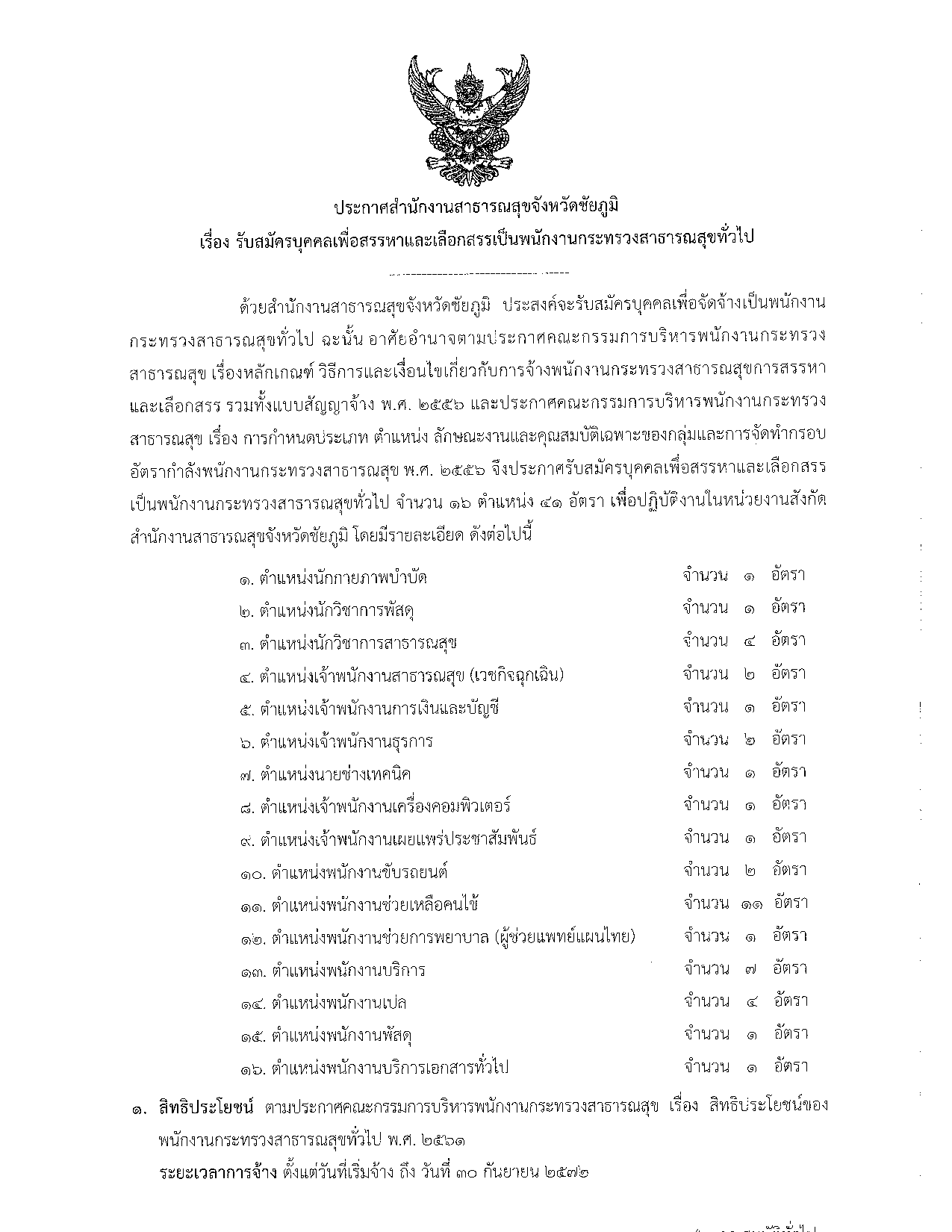 ด้วยสำนักงานสาธารมสุขจังหวัดชัยภูมิ ประสงค์จะรับสมัครบุคคลเพื่อจัดจ้างป็นพนักงาน