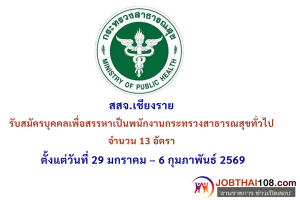 สสจ.เชียงราย รับสมัครบุคคลเพื่อสรรหาเป็นพนักงานกระทรวงสาธารณสุขทั่วไป 13 อัตรา ตั้งแต่วันที่ 29 มกราคม – 6 กุมภาพันธ์ 2569