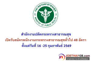 สำนักงานปลัดกระทรวงสาธารณสุข เปิดรับสมัครพนักงานกระทรวงสาธารณสุขทั่วไป 48 อัตรา ตั้งแต่วันที่ 16 -25 กุมภาพันธ์ 2569