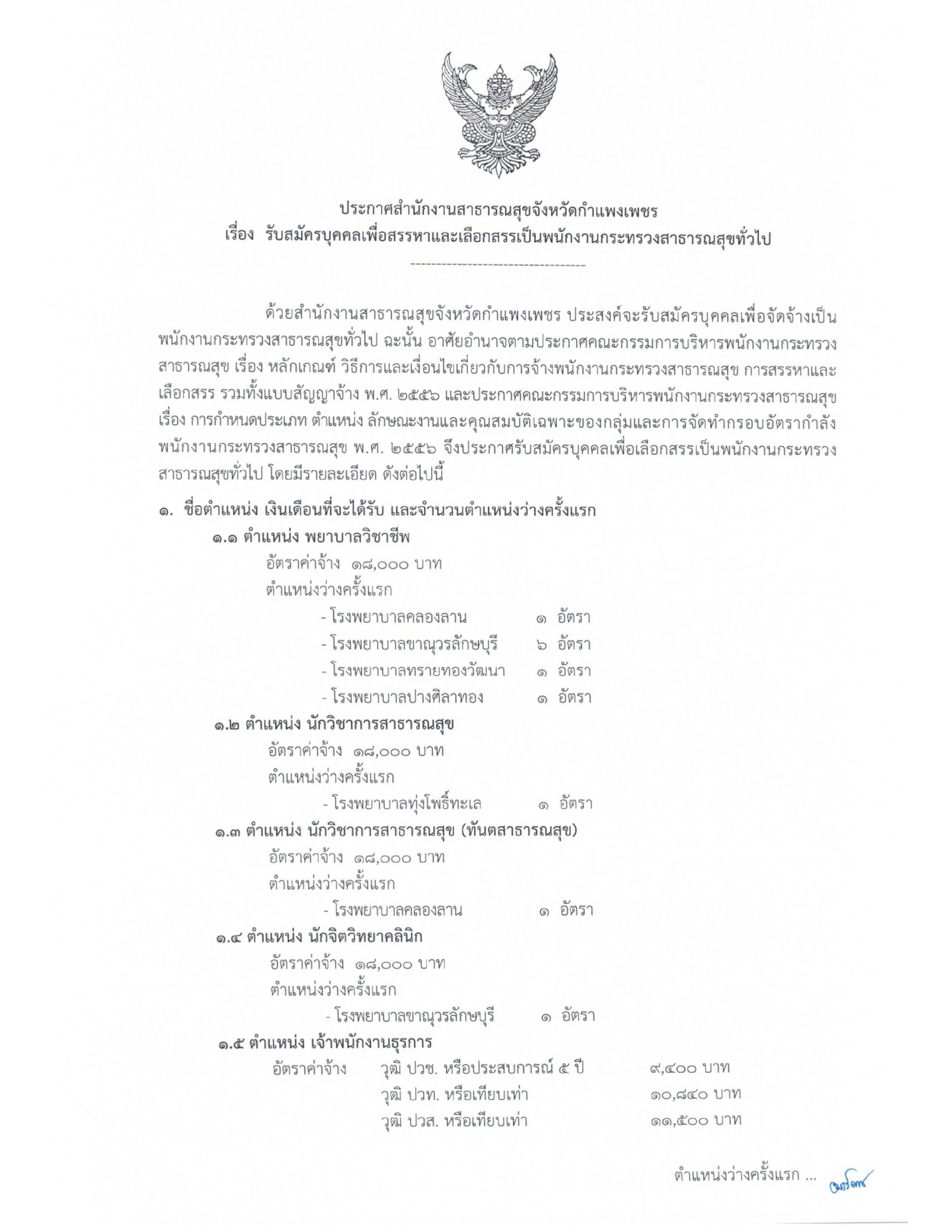 ด้วยสำนักงานสาธารณสุขจังหวัดกำแพงเพชร ประสงค์จะรับสมัครบุคคลเพื่อจัดจ้างเป็นพนักงานกระทรวงสาธารณสุขทั่วไป