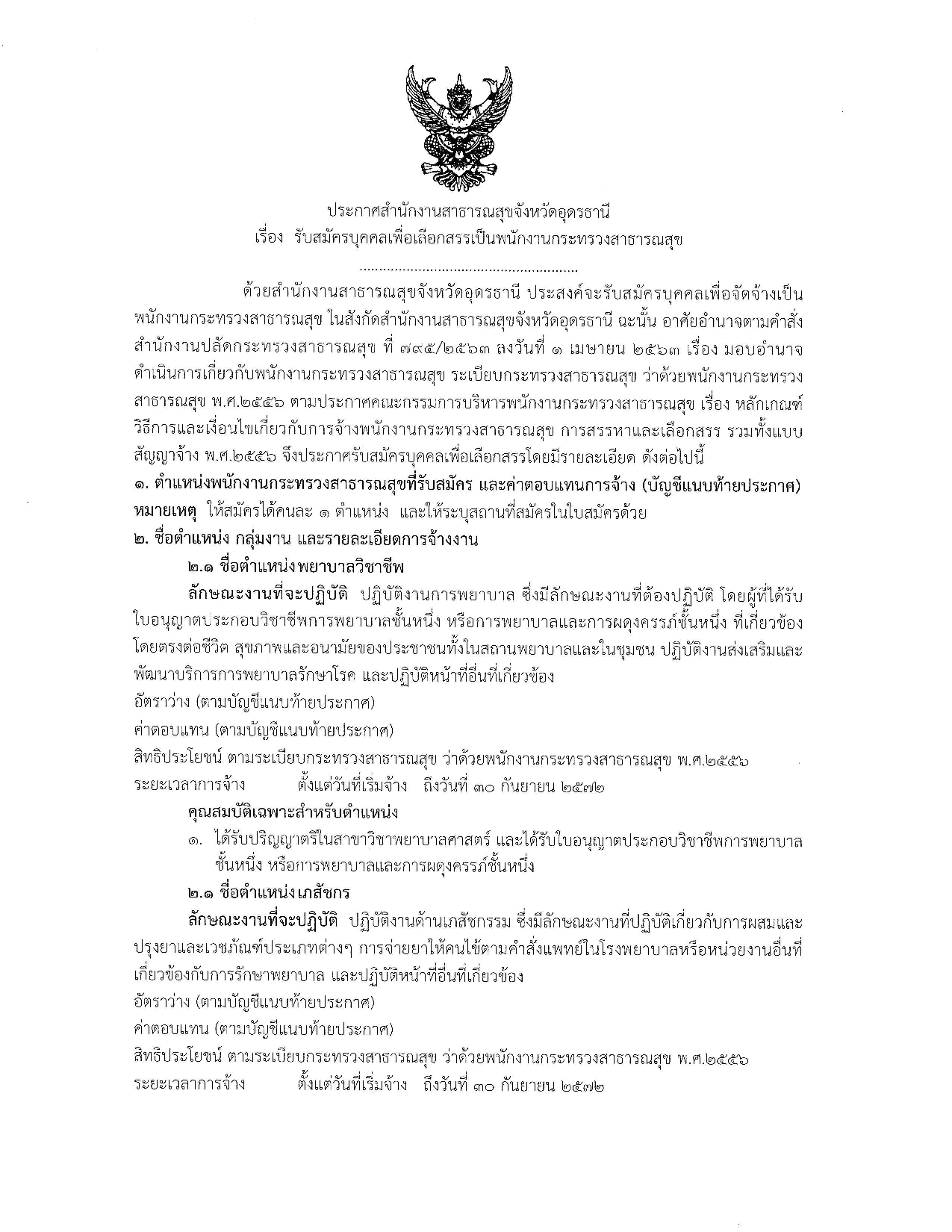 สำนักงานสาธารณสุขจังหวัดอุดรธานี เปิดรับสมัครบุคคลเพื่อเลือกสรรเป็นพนักงานกระทรวงสาธารณสุข