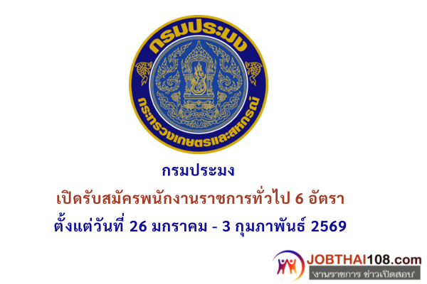 กรมประมง เปิดรับสมัครพนักงานราชการทั่วไป 6 อัตรา ตั้งแต่วันที่ 26 มกราคม – 3 กุมภาพันธ์ 2569
