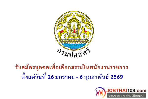 กรมปศุสัตว์ รับสมัครบุคคลเพื่อเลือกสรรเป็นพนักงานราชการ ตั้งแต่วันที่ 26 มกราคม – 6 กุมภาพันธ์ 2569