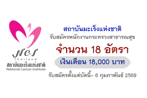 สถาบันมะเร็งแห่งชาติ รับสมัครบุคคลเพื่อเลือกสรรเป็นพนักงานกระทรวงสาธารณสุขทั่วไป 18 อัตรา ตั้งแต่บัดนี้- 6 ก.พ. 2569