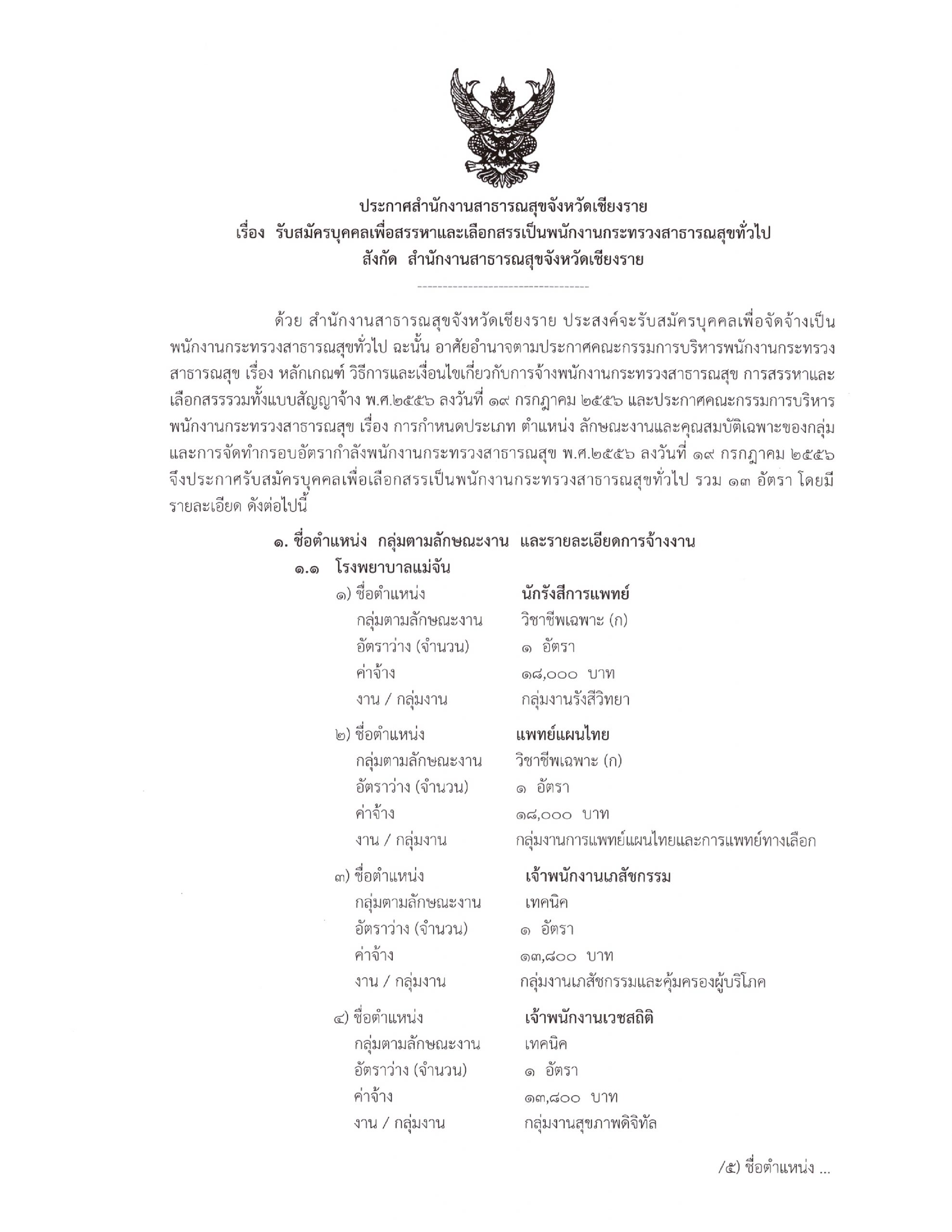ด้วย สำนักงานสาธารณสุขจังหวัดเชียงราย ประสงค์จะรับสมัครบุคคลเพื่อจัดจัดจัดจ้ายป็นพนักงานกระทรวงสาธารณสุขทั่วไป