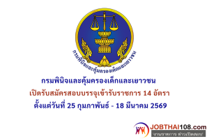 กรมพินิจและคุ้มครองเด็กและเยาวชน เปิดรับสมัครสอบบรรจุเข้ารับราชการ 14 อัตรา ตั้งแต่วันที่ 25 กุมภาพันธ์ – 18 มีนาคม 2569