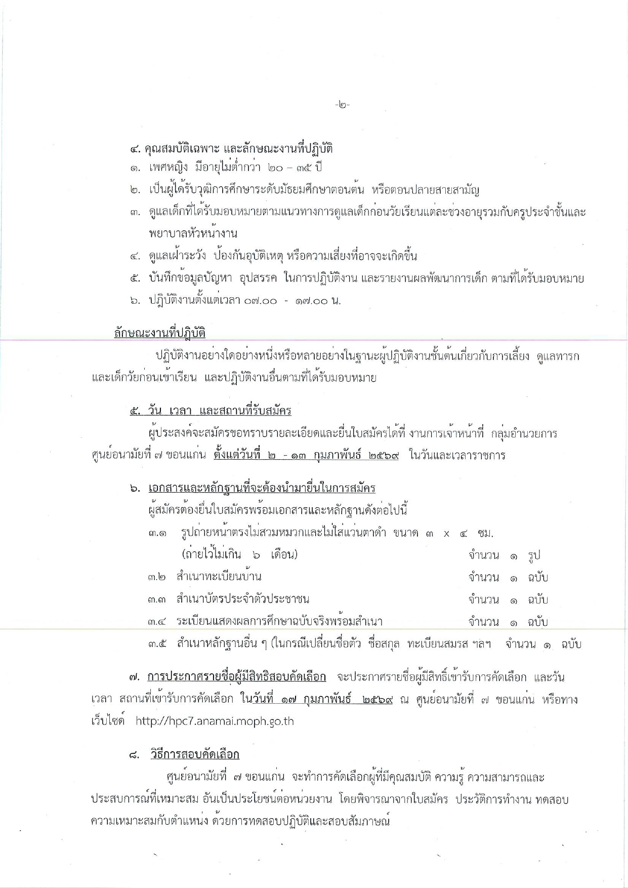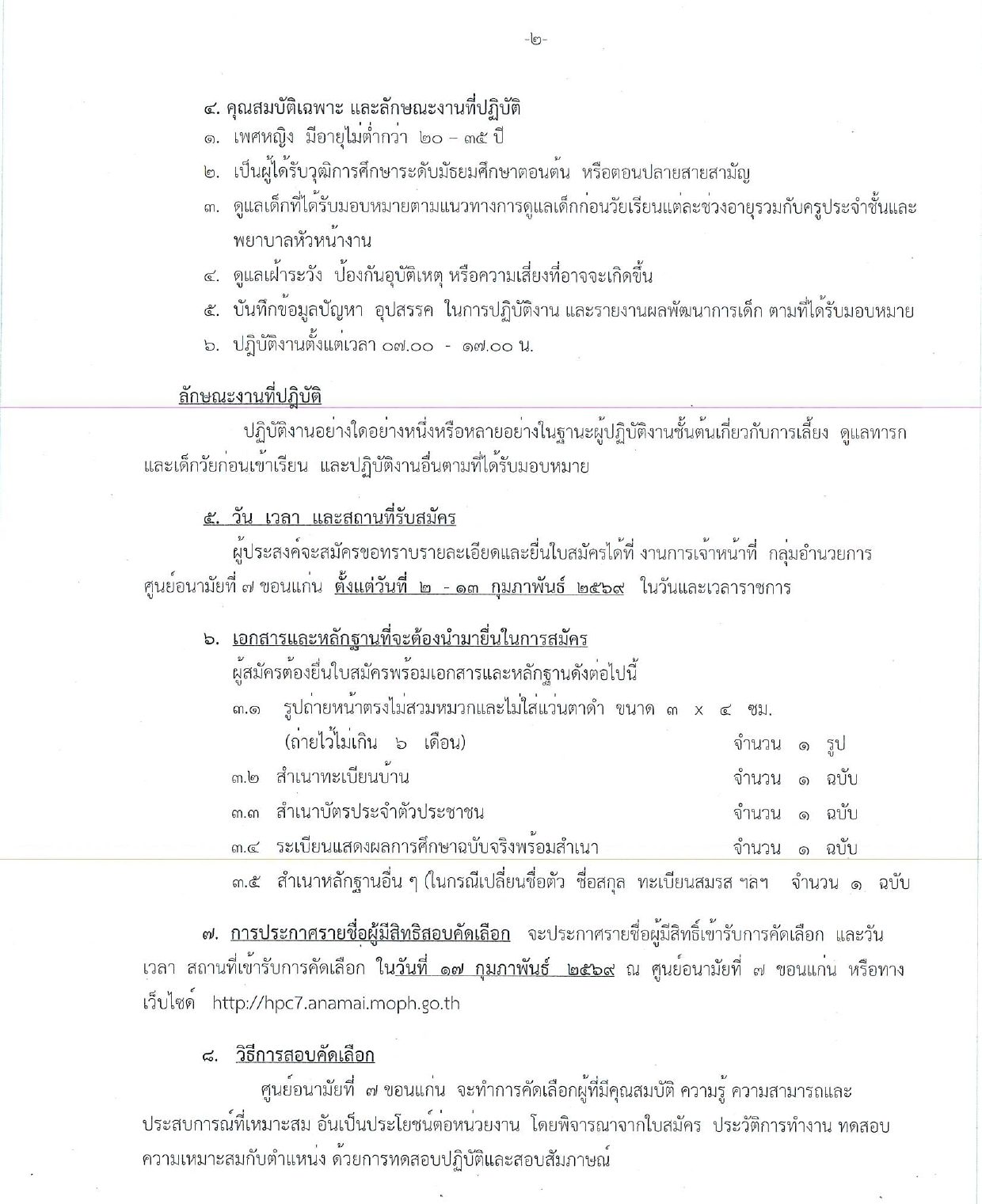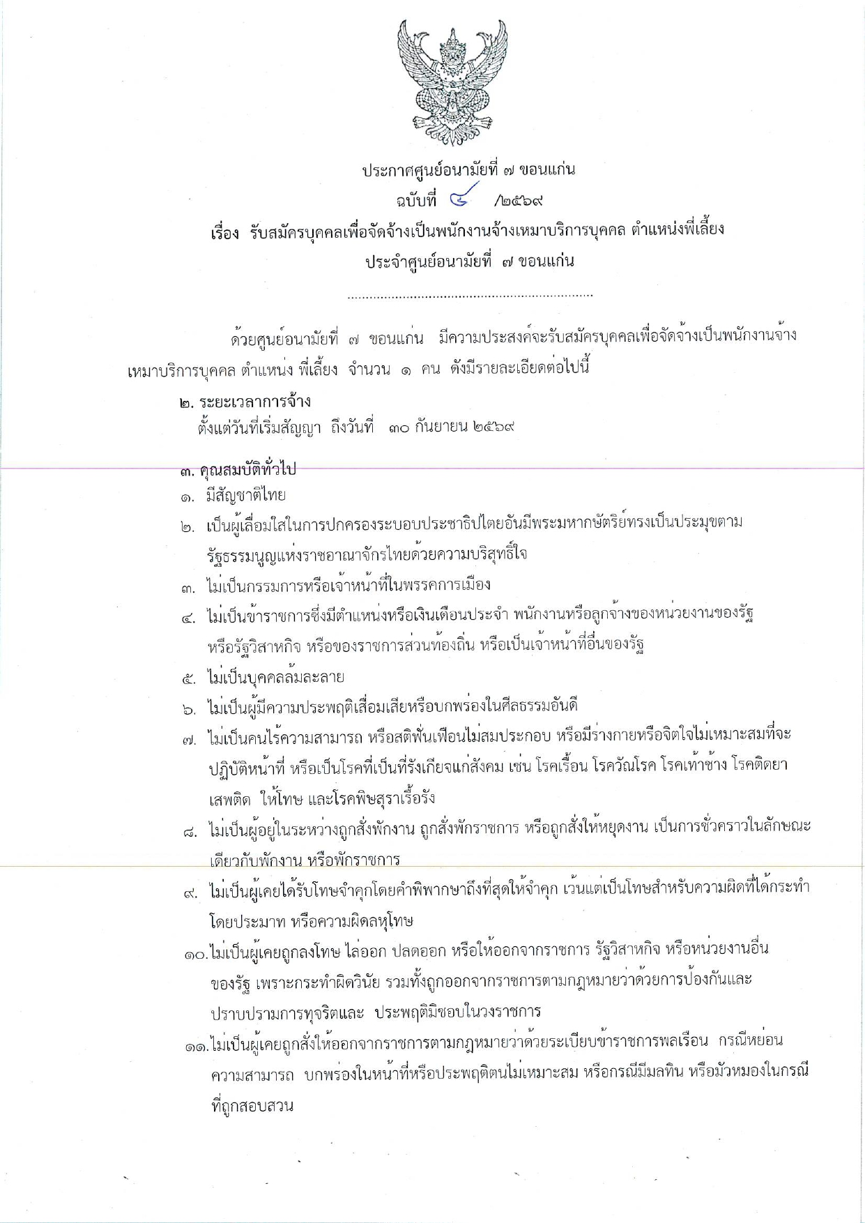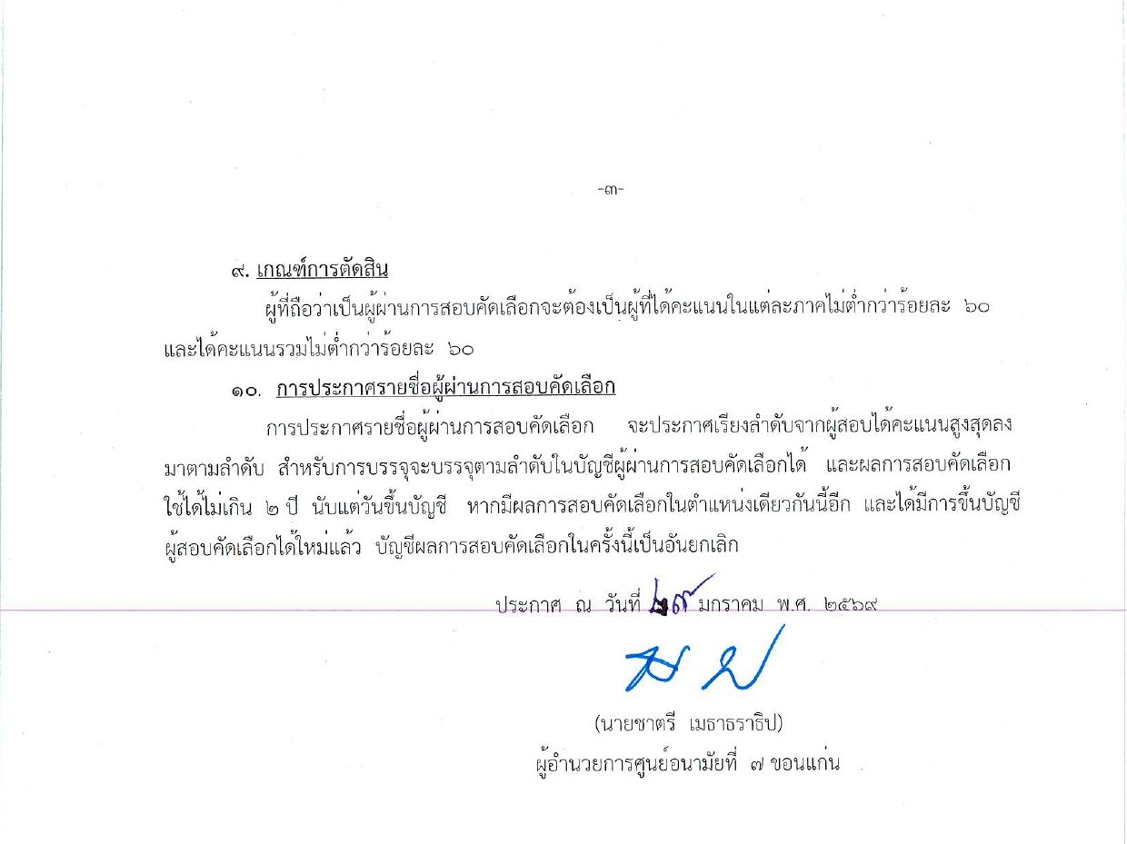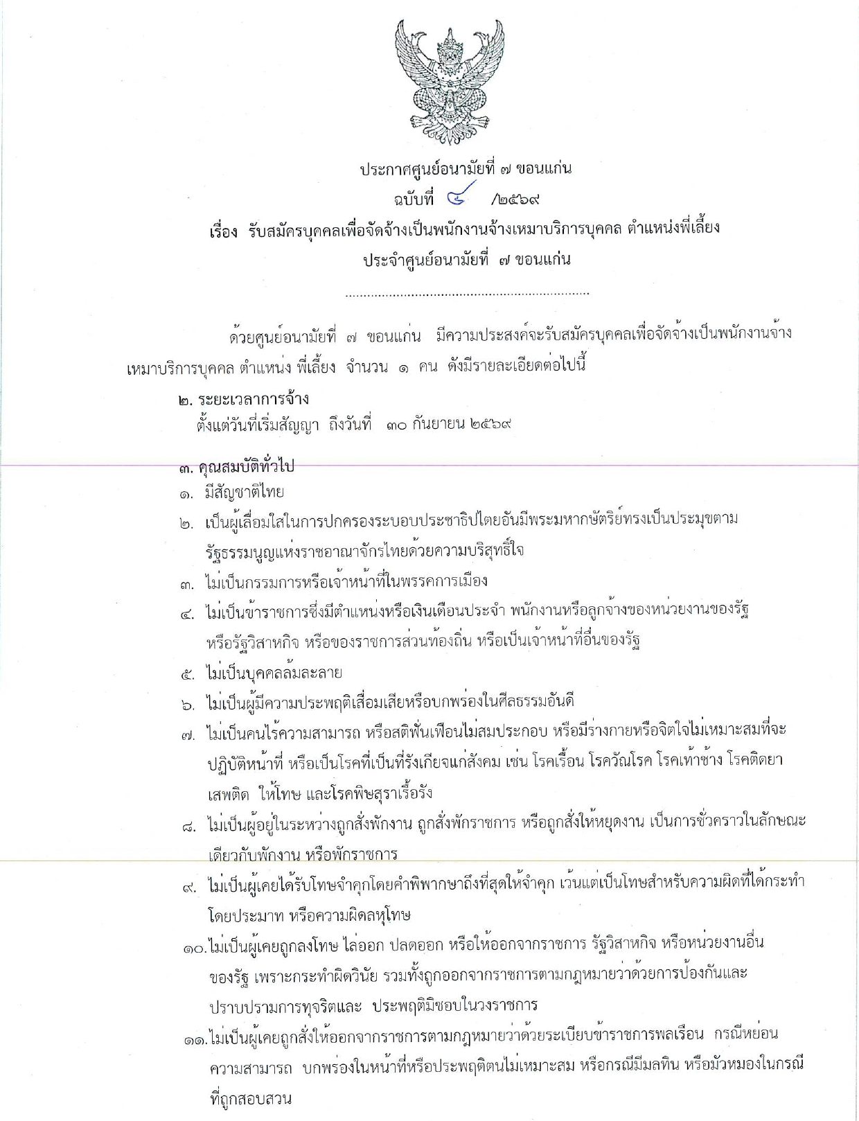 ประกาศ ศูนย์อนามัยที่ 7 ขอนแก่น เรื่อง รับสมัครบุคคลเพื่อจัดจ้างเหมาบริการบุคคล ตำแหน่งพี่เลี้ยง ฉบับที่ 4/2569