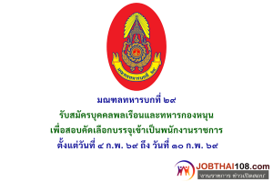 มณฑลทหารบกที่ ๒๙ รับสมัครบุคคลพลเรือนและทหารกองหนุน เพื่อสอบคัดเลือกบรรจุเข้าเป็นพนักงานราชการ ตั้งแต่วันที่ ๔ ก.พ. ๖๙ ถึง วันที่ ๑๐ ก.พ. ๖๙