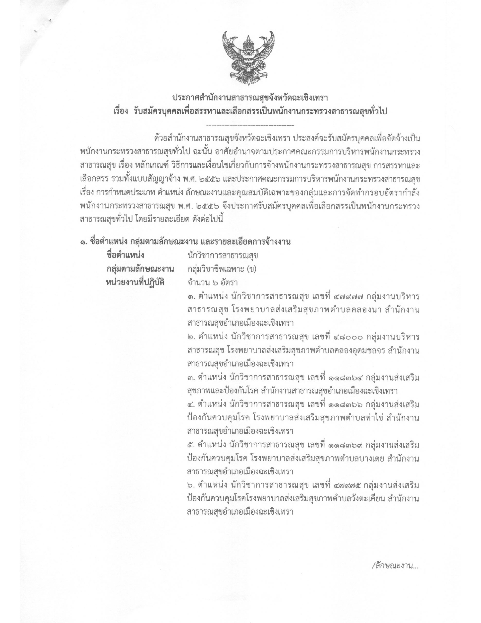 ด้วยสำนักงานสาธารณสุขจังหวัดฉะเชิงเทรา ประสงค์จะรับสมัครบุคคลเพื่อจัดจ้างเป็นพนักงานกระทรวงสาธารณสุขทั่วไป