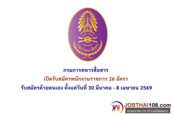 กรมการทหารสื่อสาร เปิดรับสมัครพนักงานราชการ 26 อัตรา รับสมัครด้วยตนเอง ตั้งแต่วันที่ 30 มีนาคม – 8 เมษายน 2569
