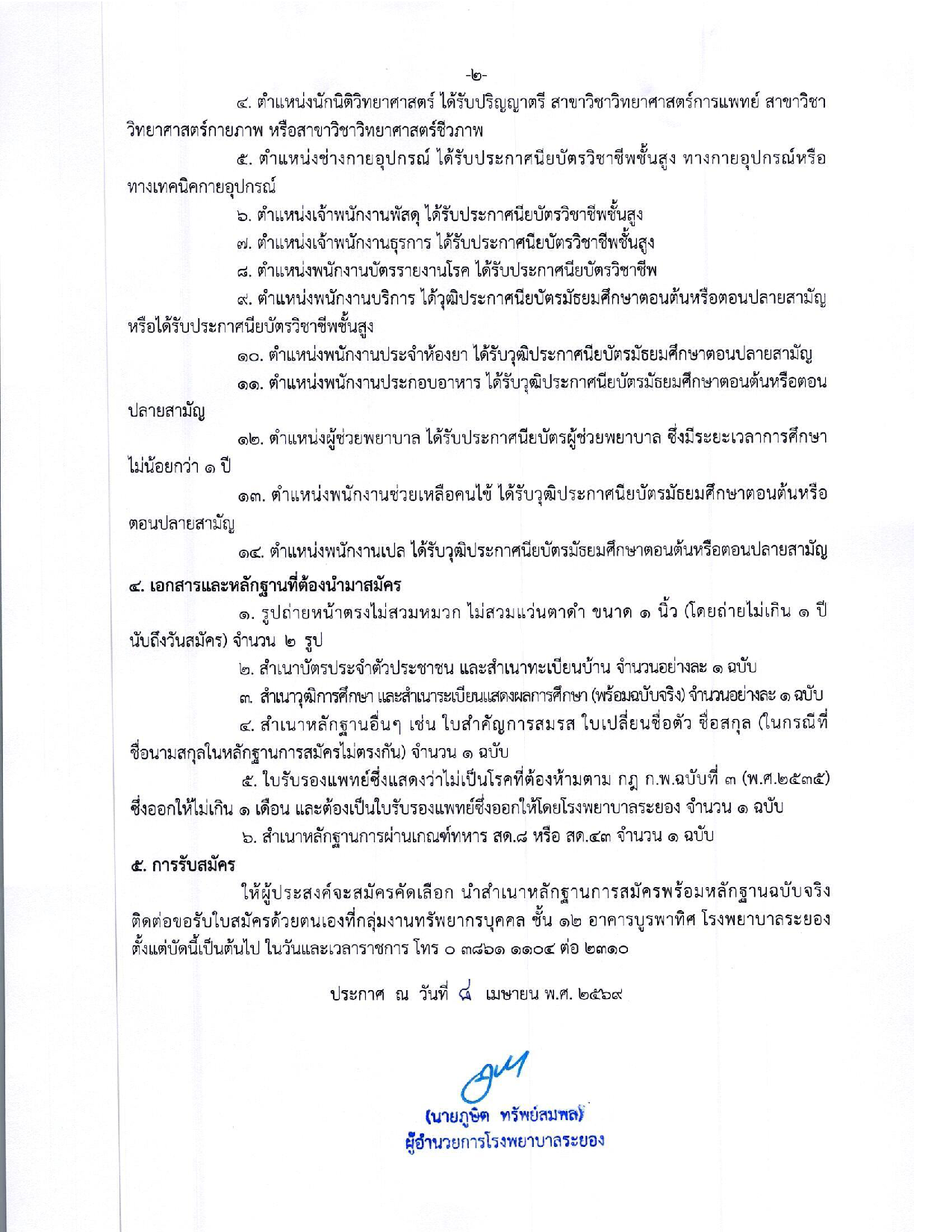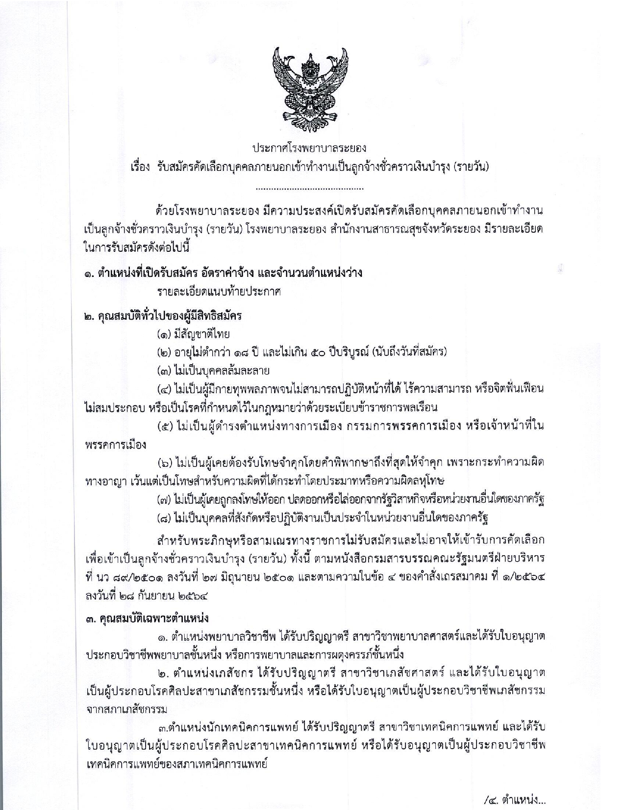 ประกาศโรงพยาบาลระยอง เรื่อง รับสมัครคัดเลือกบุคคลภายนอกเข้าทำงานเป็นลูกจ้างชั่วคราวเงินบำรุง (รายวัน)